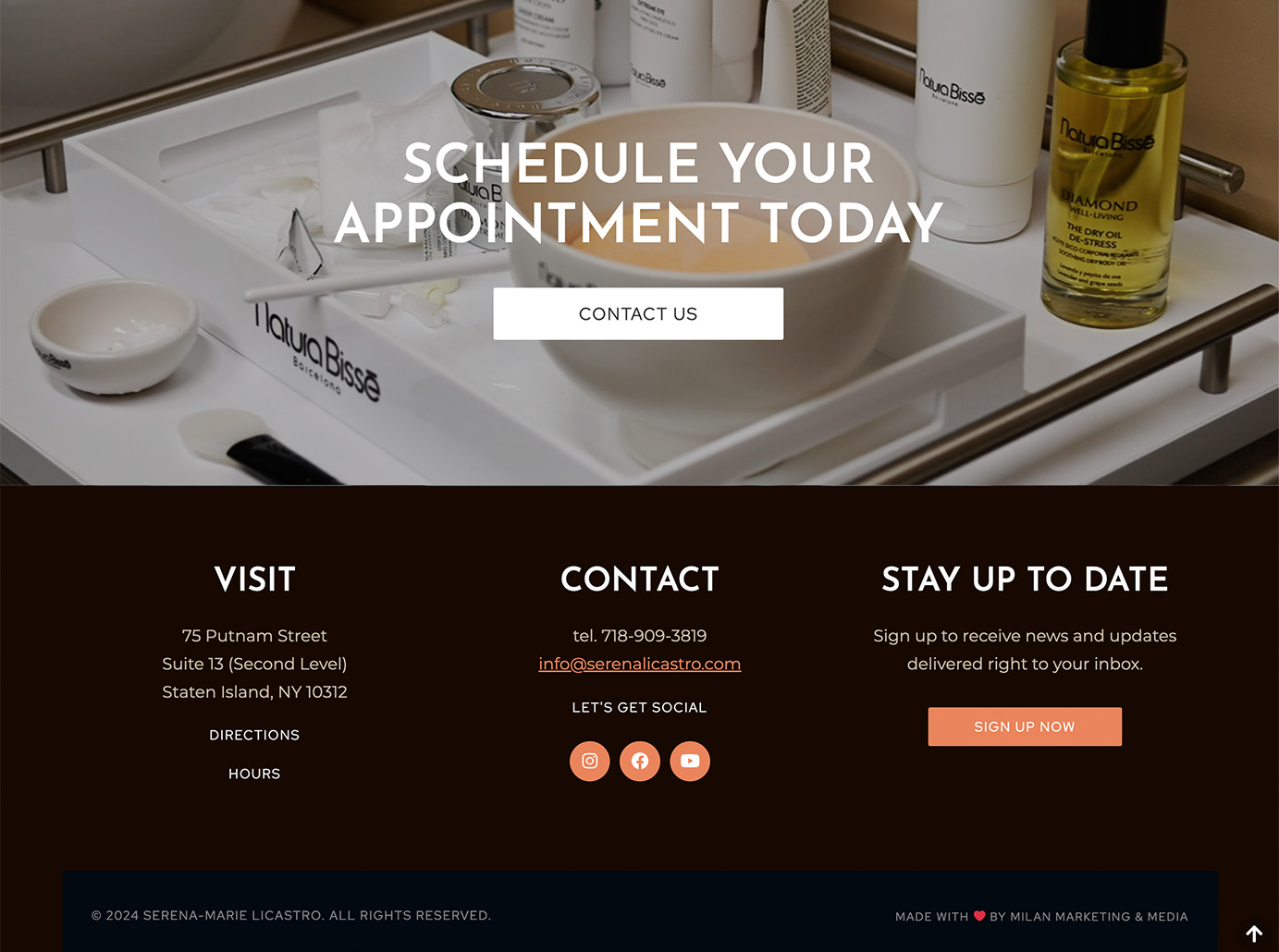 Celebrity massage therapist and aesthetician Serena Marie Licastro launched her Staten Island-based practice with a vision of bringing luxury facial and massage treatments to the island. With her training from the Shibui Spa at the Greenwich Hotel, Serena sought to partner with a marketing agency who could articulate her high-end spa experience vision.